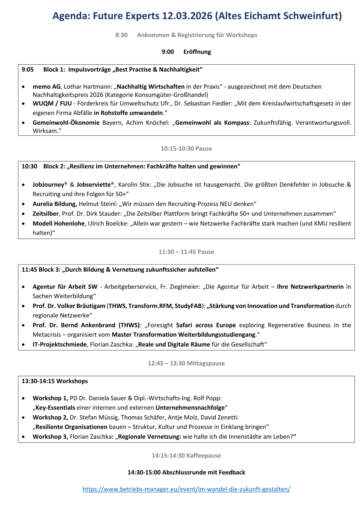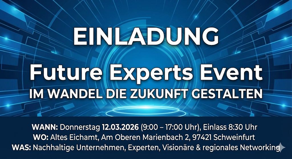 Die „Future Experts“ bringen am Do. 12.03.26 im Alten Eichamt Schweinfurt visionäre Unternehmen und erfahrene Fachleute (unsere 50+ Experts!) zusammen.